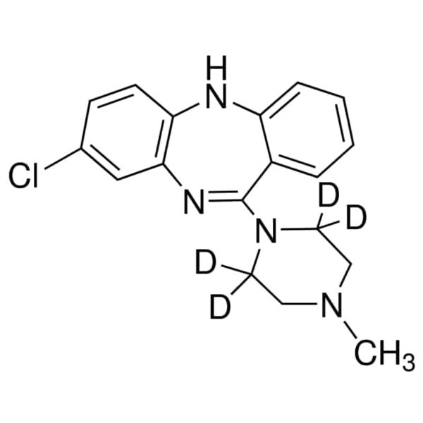 A stable-labeled internal standard for quantitation of Clozapine levels in urine, serum, or plasma by LC/MS or GC/MS for clinical toxicology, forensic analysis, and urine drug testing applications. Clozapine, sold as Clozaril and FazaClo in the US, is an atypical antipsychotic drug used for the treatment of schizophrenia.