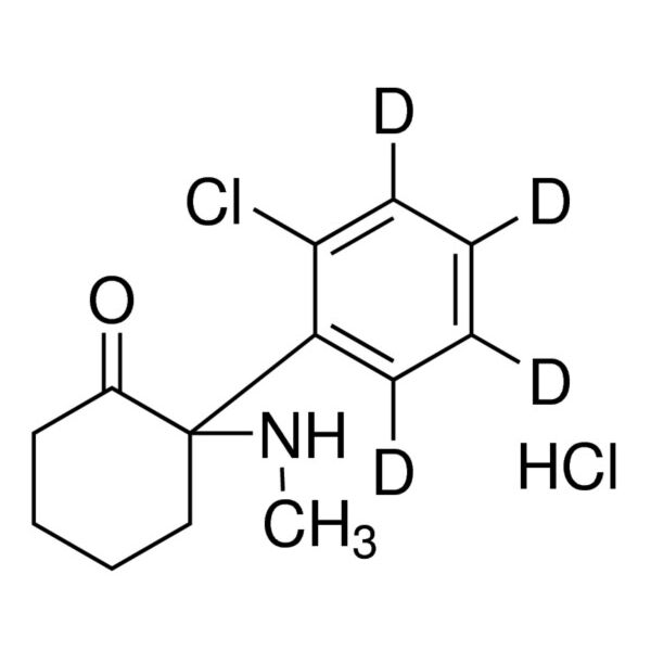 This stable-labeled internal standard is suitable for quantitation of ketamine levels in GC/MS or LC/MS applications from clinical toxicology and forensic analysis to urine drug testing and isotope dilution methods. Ketamine, marketed under trade names Ketanest, Ketaset, and Ketalar, is an anesthetic used in human and veterinary medicine. The drug is also abused at clubs, raves, or parties for its noted hallucinogenic and dissociative properties and is prescribed by some doctors as an off-label treatment for depression.